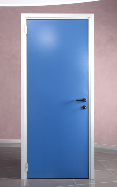 -L’anta della porta viene costruita impiegando lamiera in acciaio zincato e verniciato con polveri epossipoliestere con finitura antigraffio RAL 7035. Internamente viene impiegato del caibente in cartone alveolare.